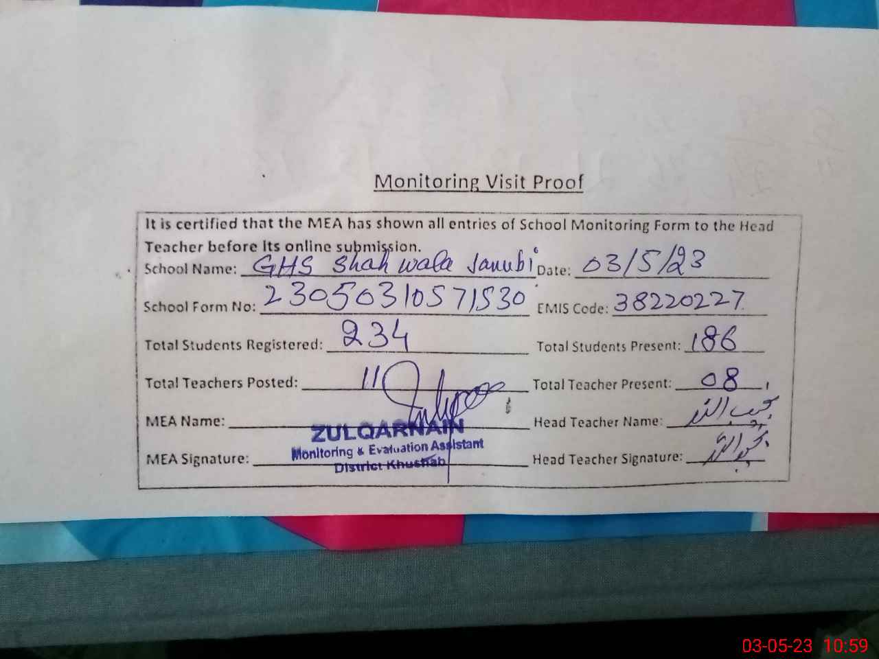 | EMIS Code: 38220227 | Name of School: GHS SHAH WALA JANUBI | |||