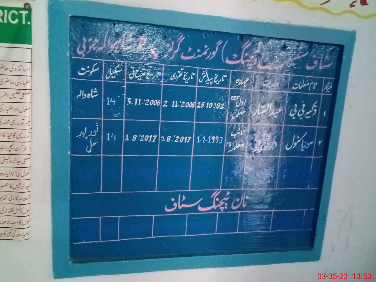 | District: KHUSHAB | Tehsil: NOORPUR THAL | Markaz: NOOR PUR (WEST) (FEMALE) | Level: Middle | |