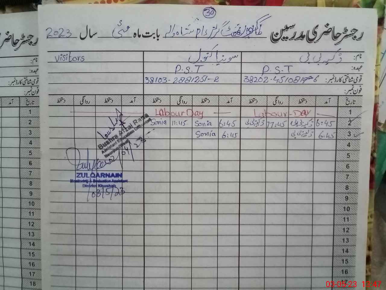 | Name: ZA**** BI**** Designation: (School Headmaster's/Headmistress's) PST Phone/Cell Number: 03**** |