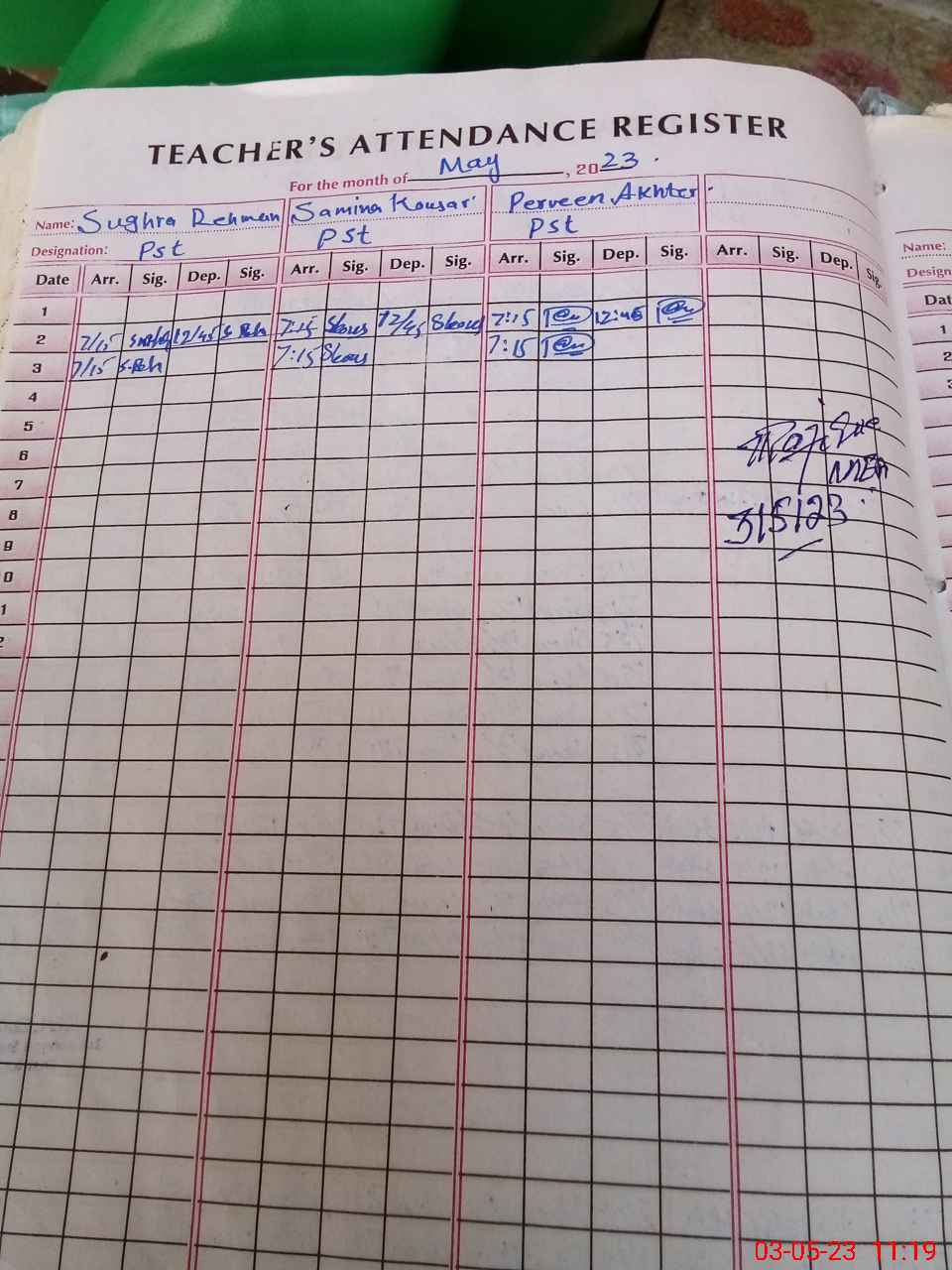 | Monitoring Date: 03-05-2023 | Start Time: 03-05-2023 10:56 AM | End Time: 03-05-2023 11:23 AM | Name of MEA: MU**** RA**** (R**** | |