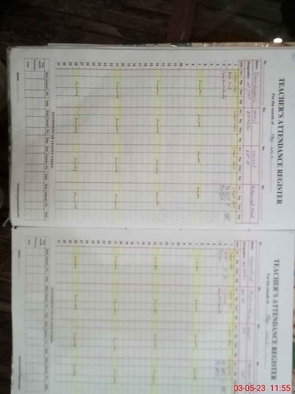 | Total no. of Classrooms: 7 No. of Classrooms Used for Teaching: 7 No. of Classrooms Storing Old Furniture, FTBs, etc: 0Comments if Any: NSB record register not updated from March to April 2023 Bank account statement also not available FTF record register not updated from September 2022 to April 2023 |