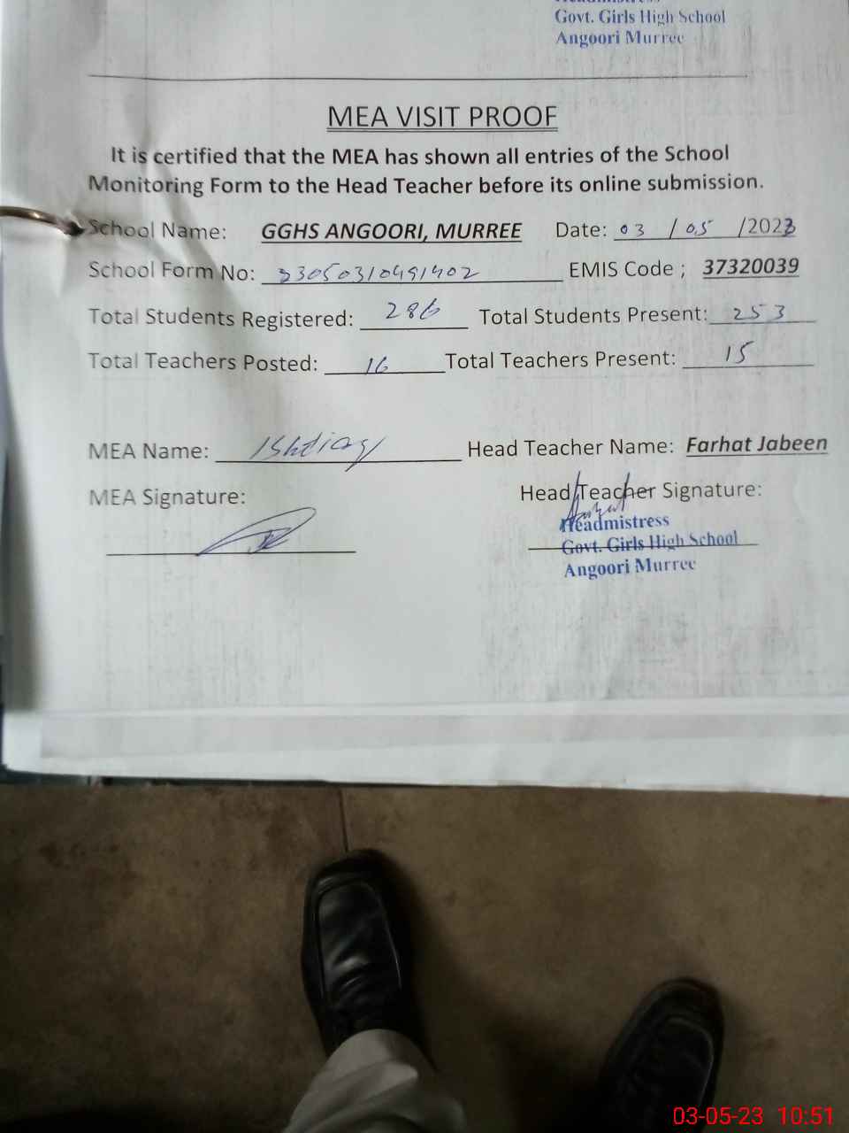 | EMIS Code: 37320039 | Name of School: GGHS ANGOORI | |||