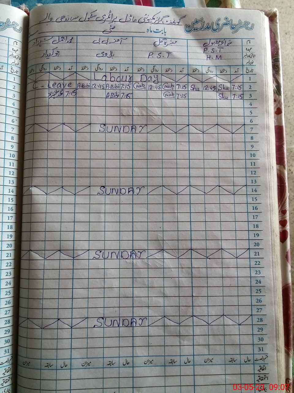 | CNIC | Full Name | Designation | R/C | Absence During Last Calender Month |