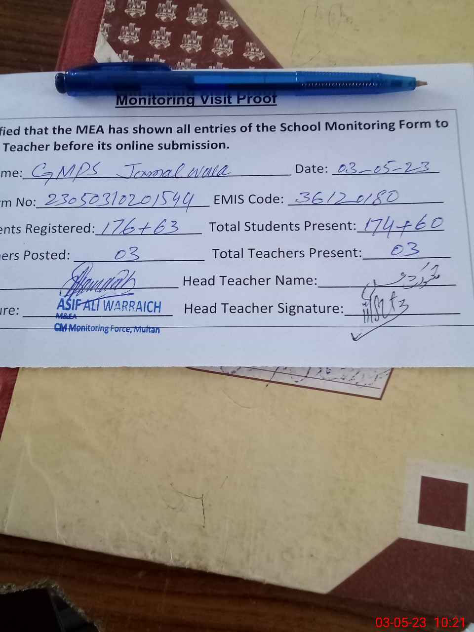 | EMIS Code: 36120180 | Name of School: GMPS JAMAL WALA SHUJABAD | |||
