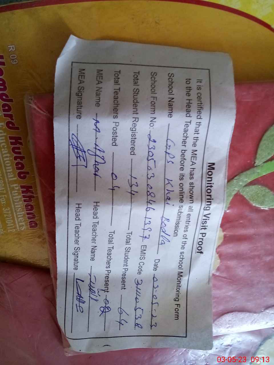 | EMIS Code: 31110538 | Name of School: GPS KHAI BODLA | |||