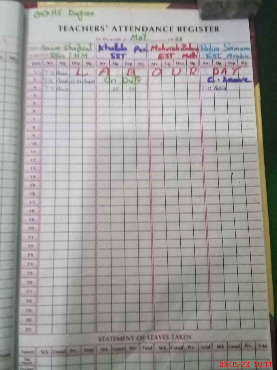 | 33**** | Kh**** Pe**** | SST | Regular | 0 | 0 | 0 | 0 | 0 | 0 | 0 | 0 | 0 | Exam Duty |