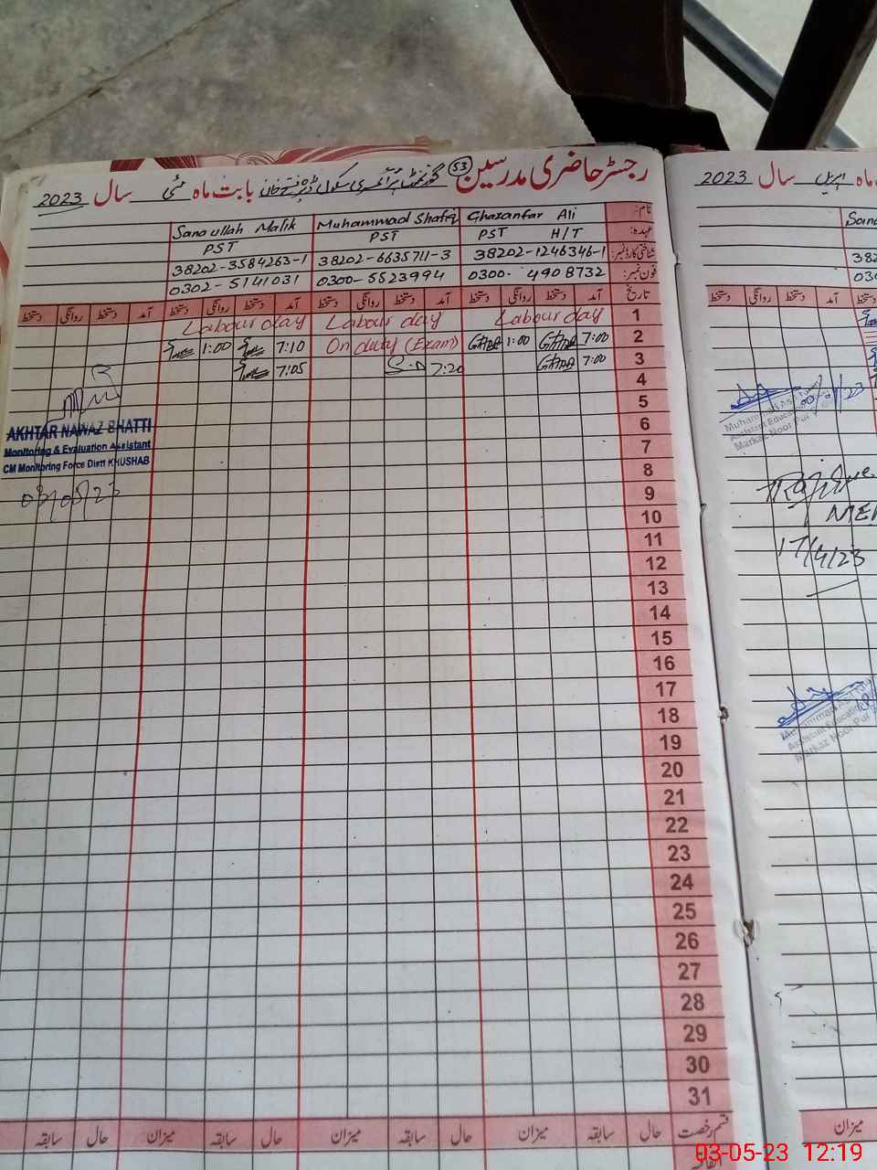 | Name: Gh**** Al**** Designation: (School Headmaster's/Headmistress's) PST Phone/Cell Number: 03**** |