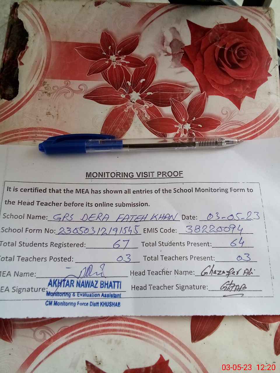 | Attendance Register | Head Teacher | MEA with School | Visit Proof |