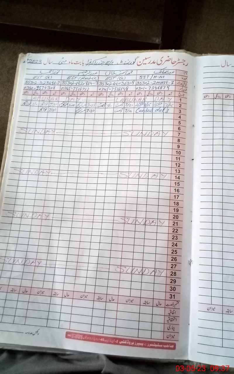 | Name: Ab**** Ma**** Designation: (School Headmaster's/Headmistress's) Sst Phone/Cell Number: 03**** |