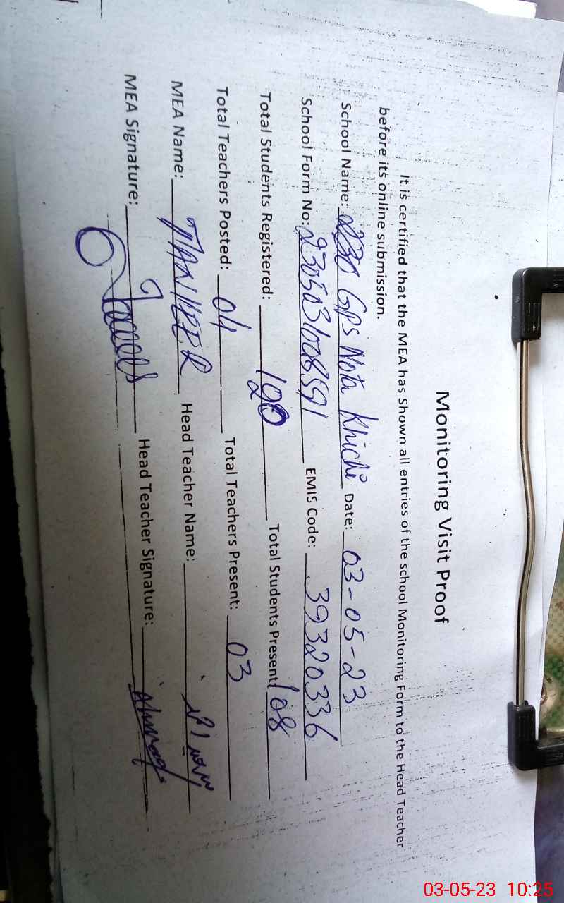 | EMIS Code: 39320336 | Name of School: GPS NOTHA KHICHI | |||