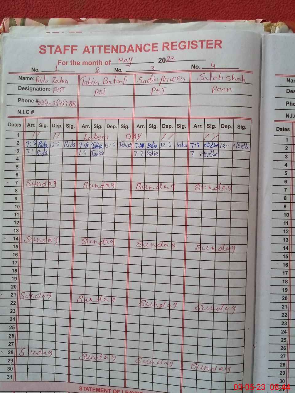 | Name: Ri**** Za**** Designation: (School Headmaster's/Headmistress's) PST Phone/Cell Number: 03**** |