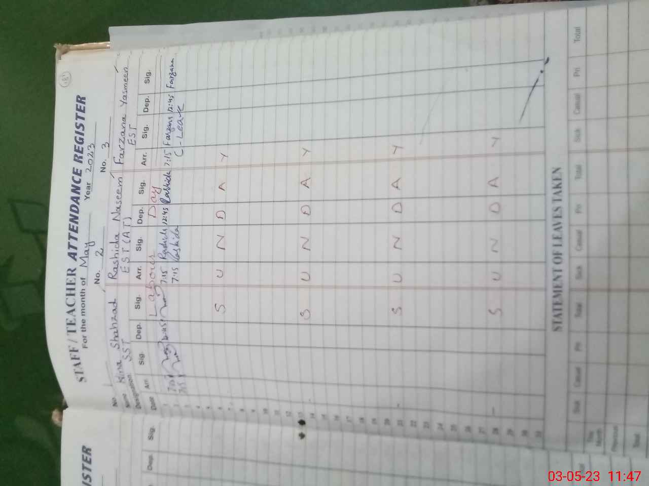 | No. of Students Present - Female | 27 | 0 | 20 | 36 | 40 | 38 | 37 | 49 | 39 | 40 | 27 | 33 | 36 | 422 | ||
