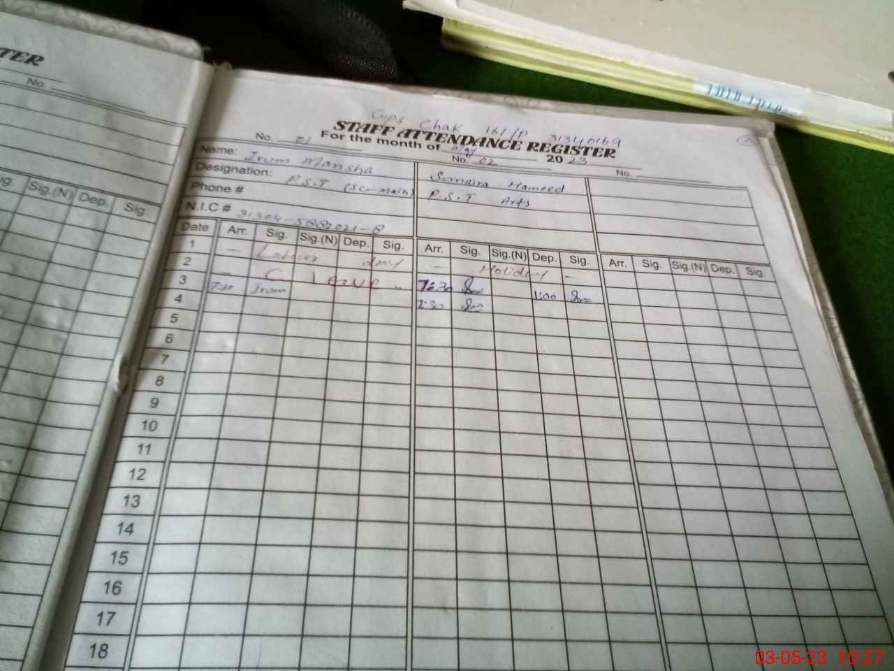 | Name: Ir**** Ma**** Designation: (School Headmaster's/Headmistress's) PST Phone/Cell Number: 03**** |