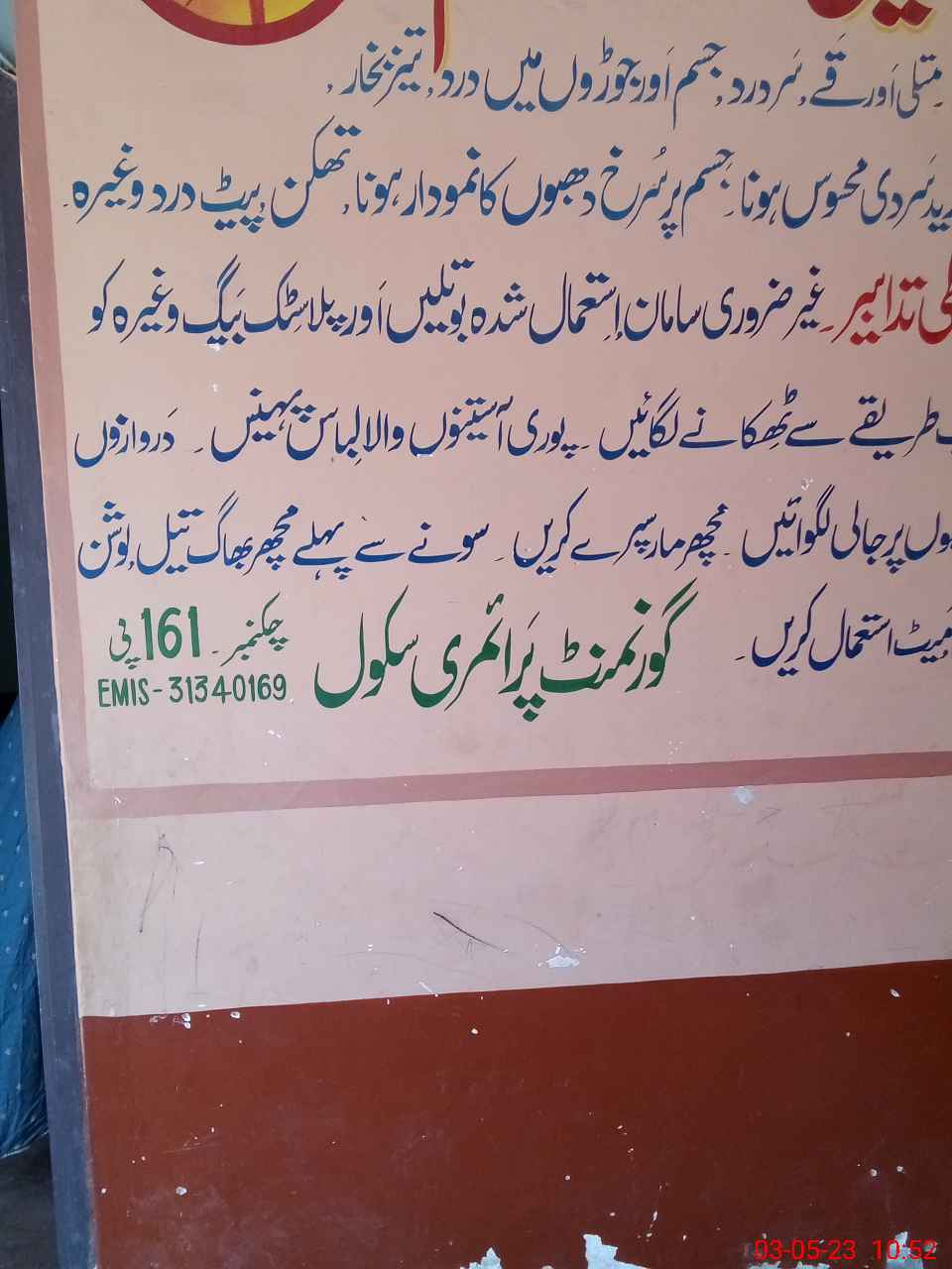 | EMIS Code: 31340169 | Name of School: GPS CHAK NO. 161/P | |||