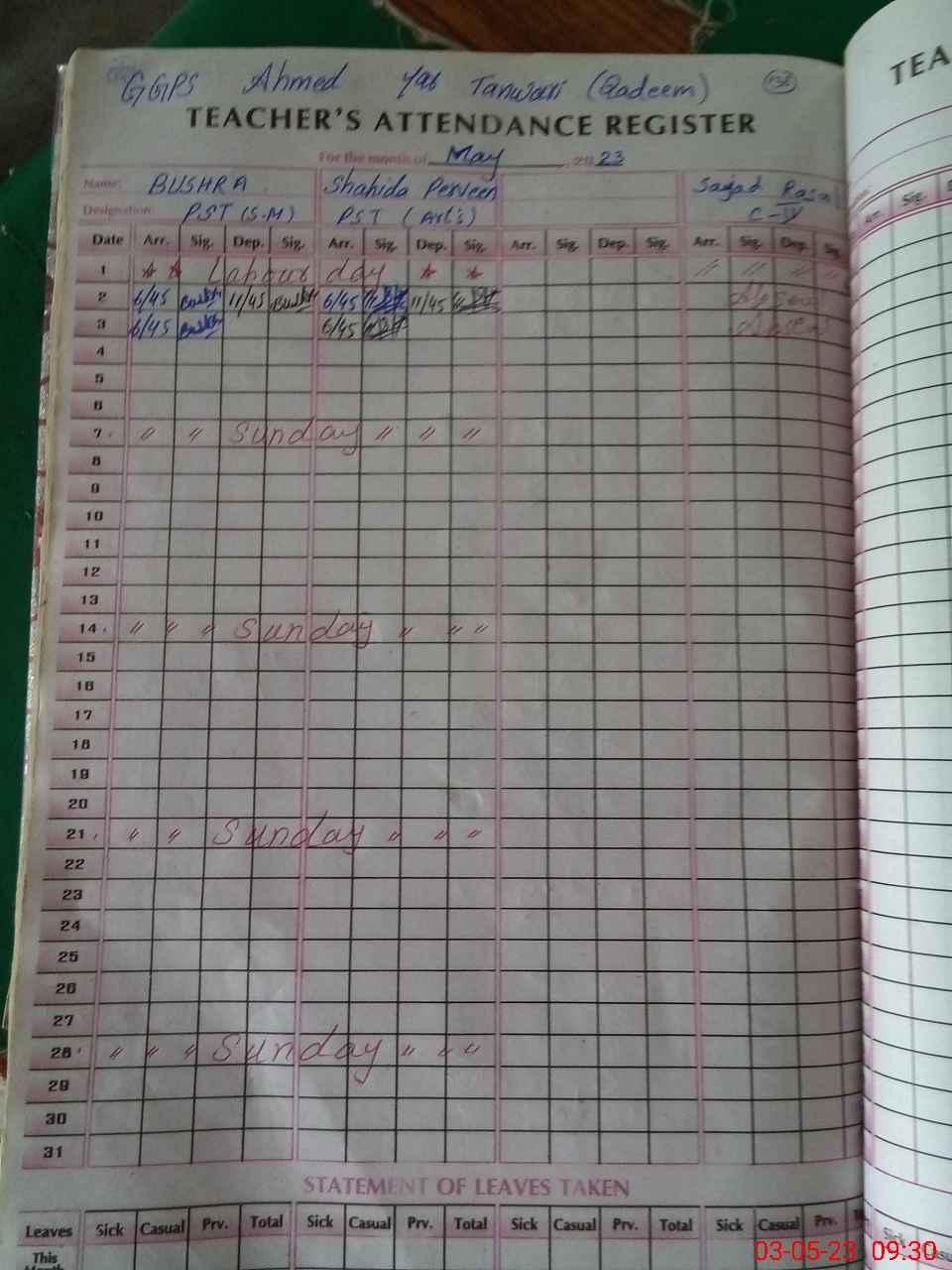| 31**** | SA**** RA**** | SQ | Regular | 0 | 0 | 30 | 0 | 0 | 0 | 0 | 0 | 0 | Absent (Un-Authorized) |