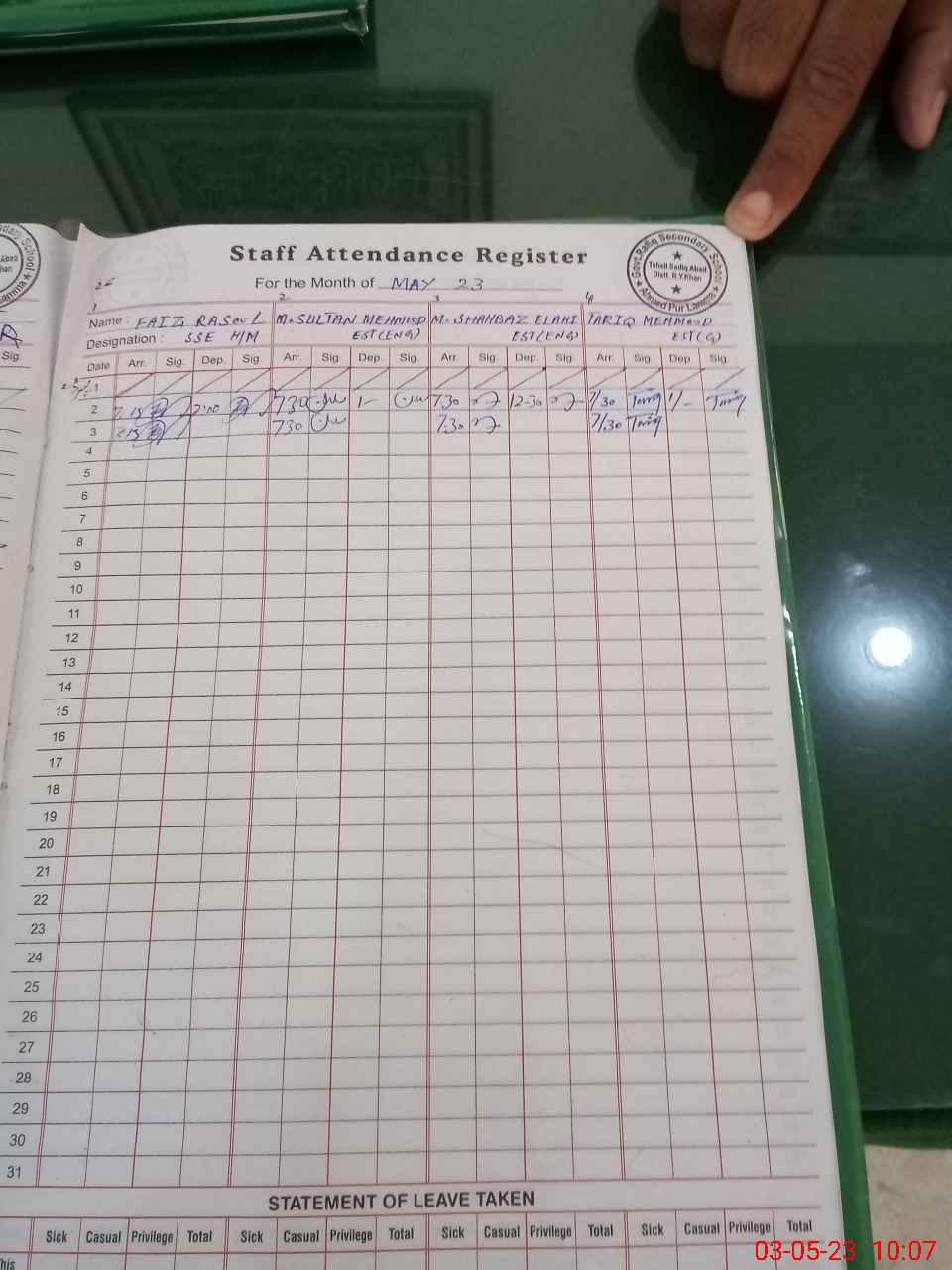| Name: Ta**** Me**** Designation: (School Headmaster's/Headmistress's) EST Phone/Cell Number: 03**** |