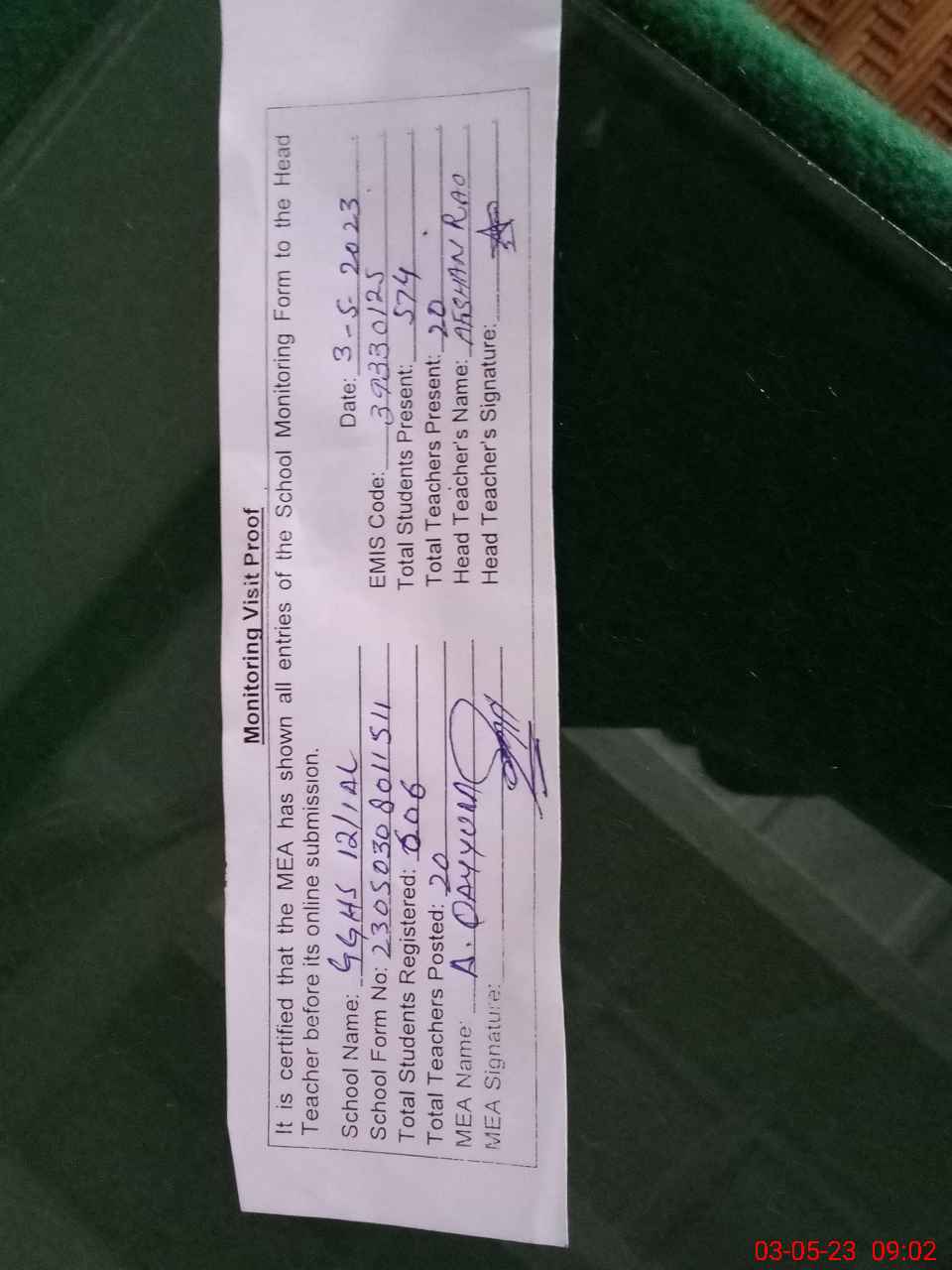 | Certified that this School was Inspected by the Undersigned MEA/DMO Today and the Information Stated Above is as Per Record. | |||||