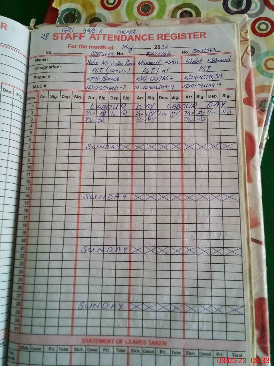 | Name: Mu**** Ab**** Designation: (School Headmaster's/Headmistress's) PST Phone/Cell Number: 03**** |