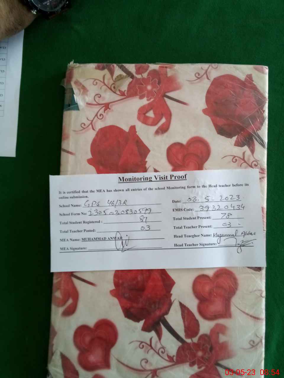 | Attendance Register | Head Teacher | MEA with School | Visit Proof |