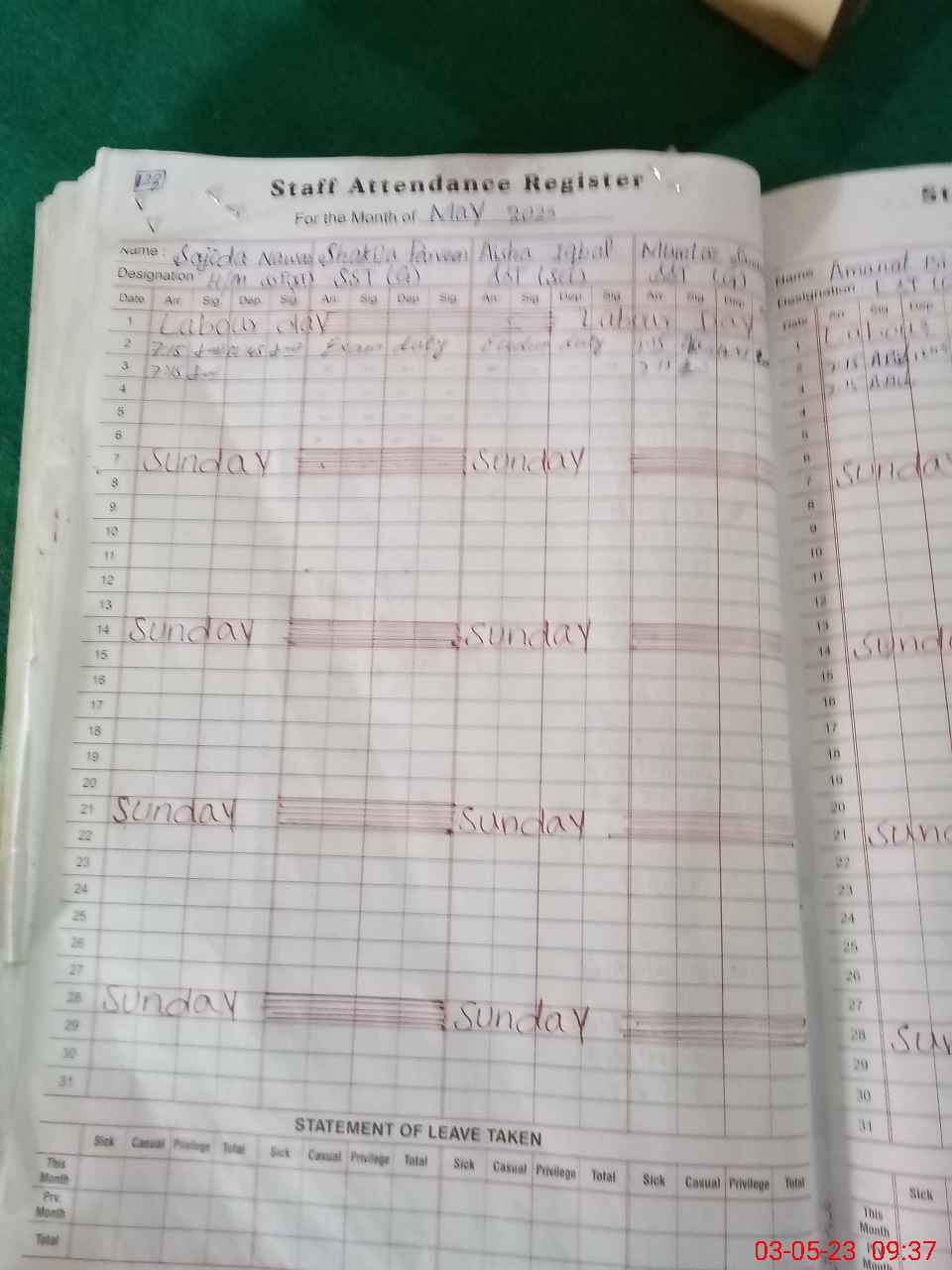 | 35**** | Sh**** Pa**** | SST | Regular | 0 | 0 | 0 | 0 | 0 | 0 | 0 | 0 | 0 | Exam Duty |