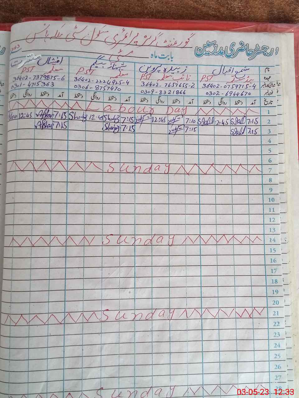 | Name: AF**** MU**** Designation: (School Headmaster's/Headmistress's) PST Phone/Cell Number: 03**** |
