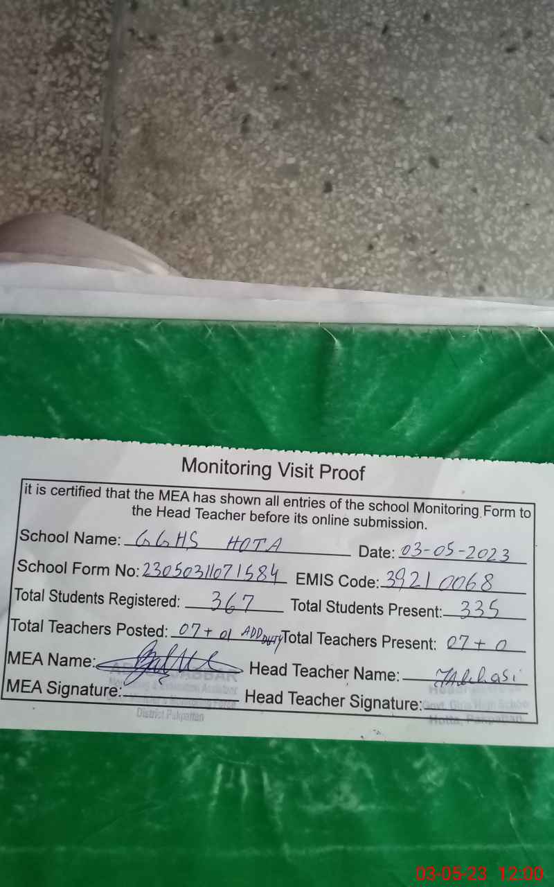 | EMIS Code: 39210068 | Name of School: GGHS HOTA | |||