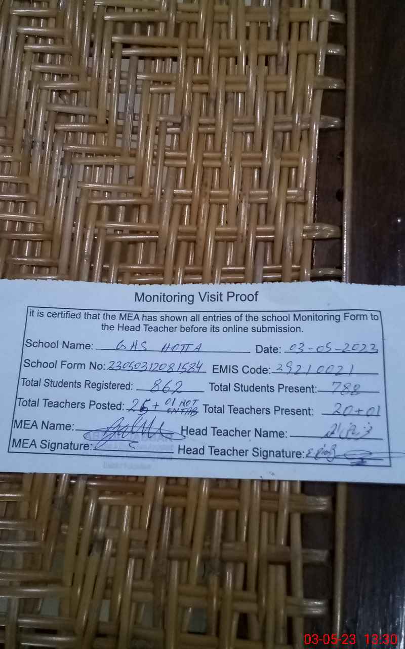 | EMIS Code: 39210021 | Name of School: GHS HOTTA | |||