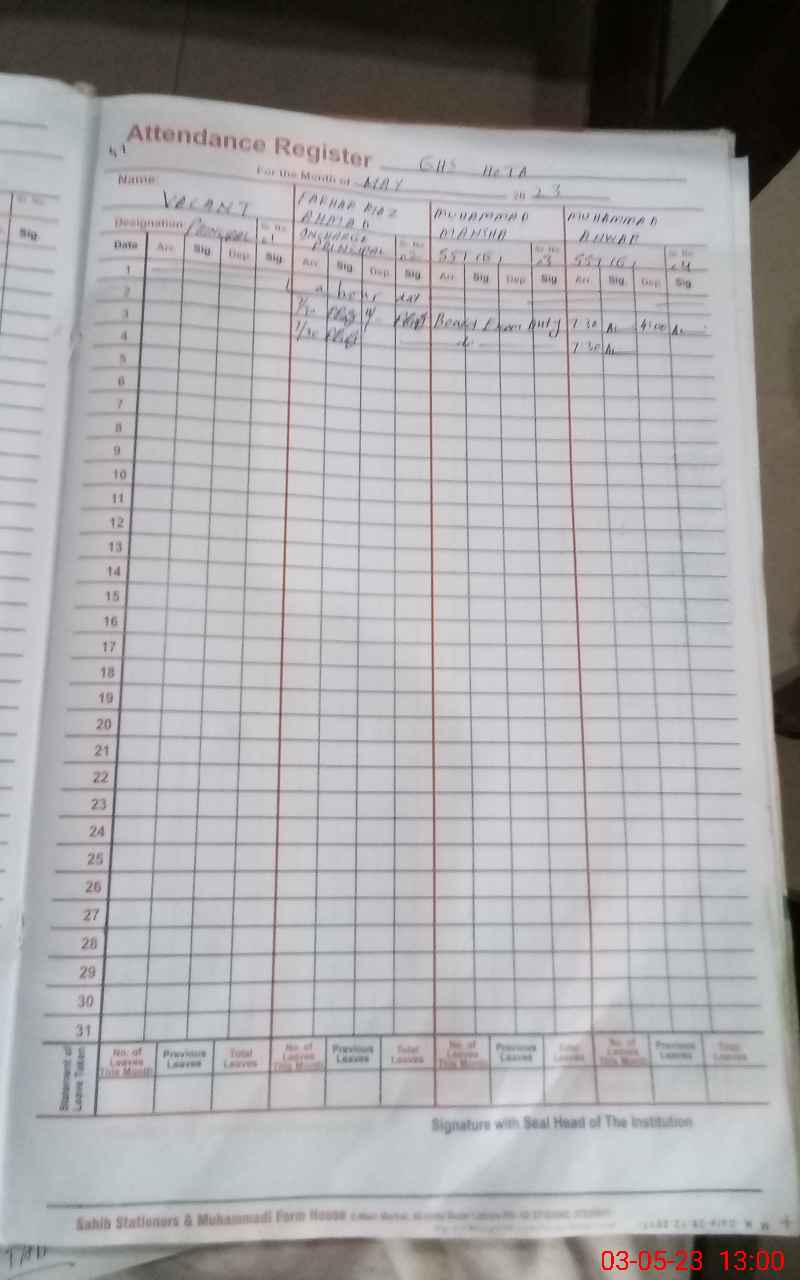 | Name: IJ**** AH**** Designation: (School Headmaster's/Headmistress's) SST SC (INCHARGE ) Phone/Cell Number: 03**** |