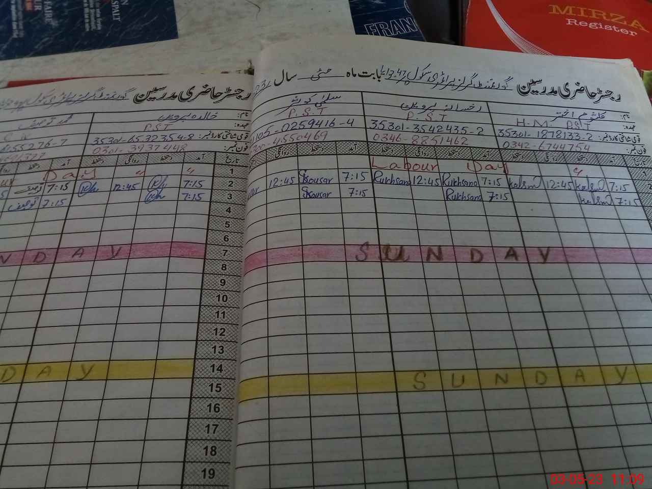 | CNIC | Full Name | Designation | R/C | Absence During Last Calender Month |
