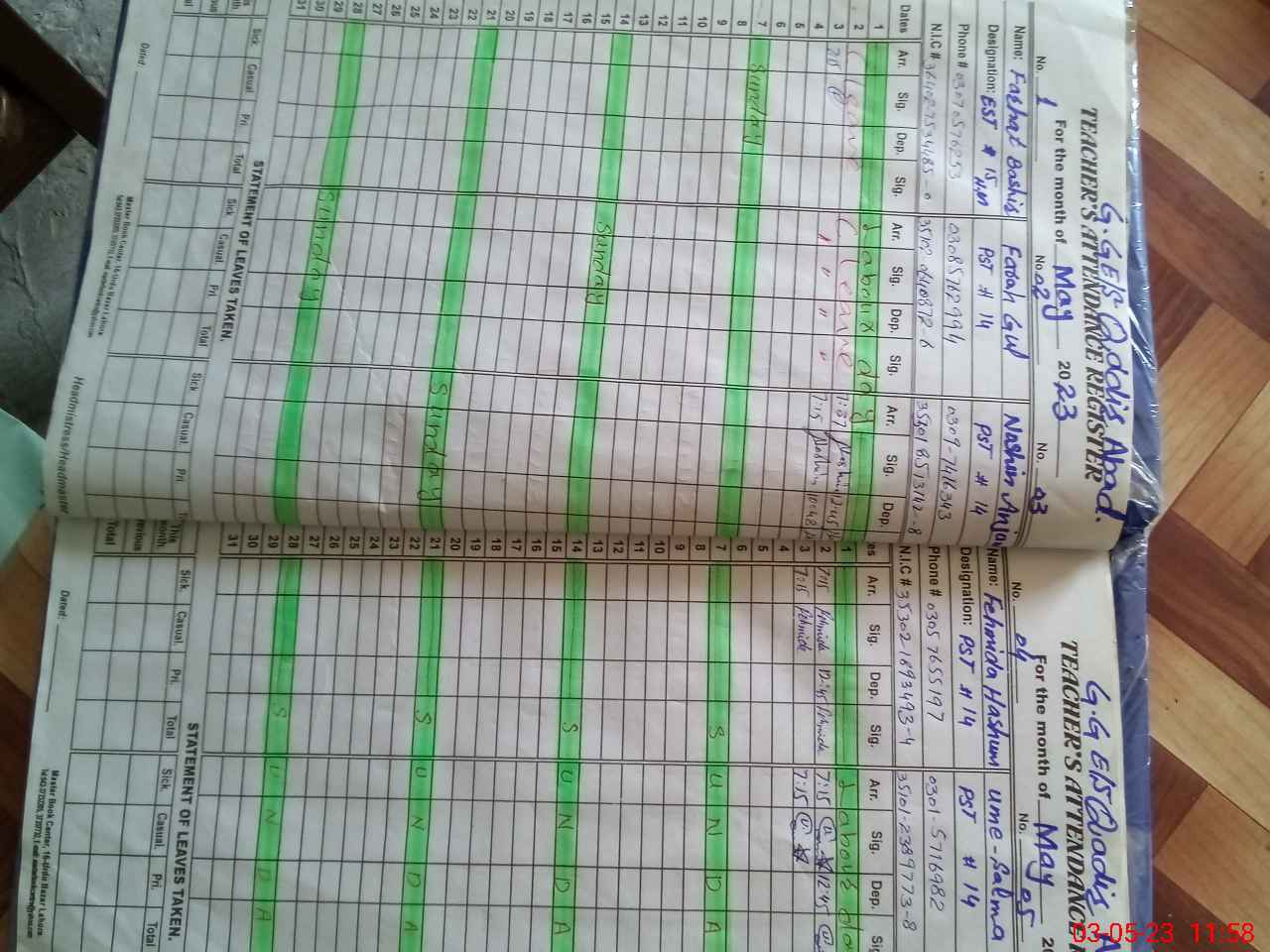 | CNIC | Full Name | Designation | R/C | Absence During Last Calender Month |