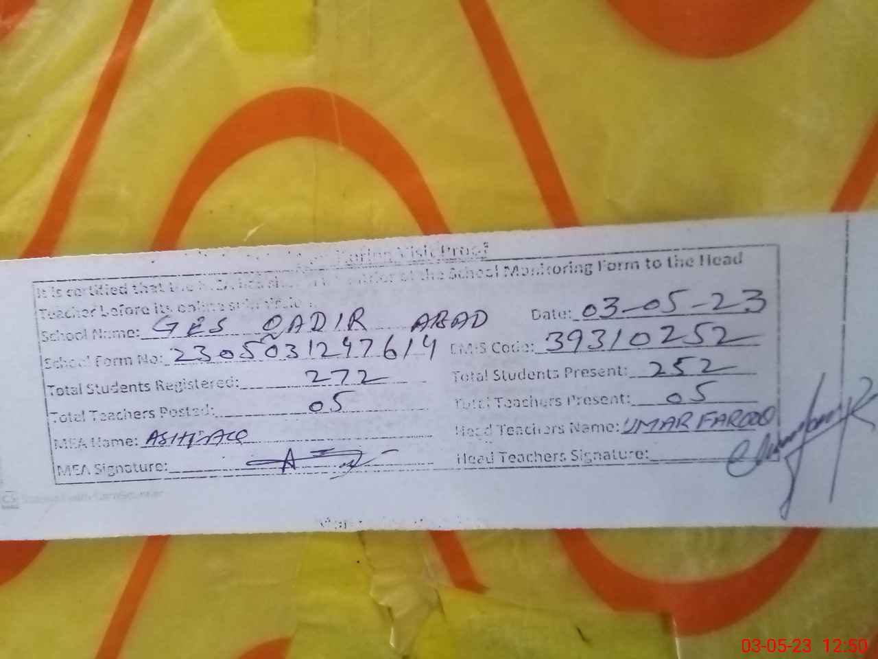 | Name: Um**** Fa**** Designation: (School Headmaster's/Headmistress's) SSE Phone/Cell Number: 03**** |