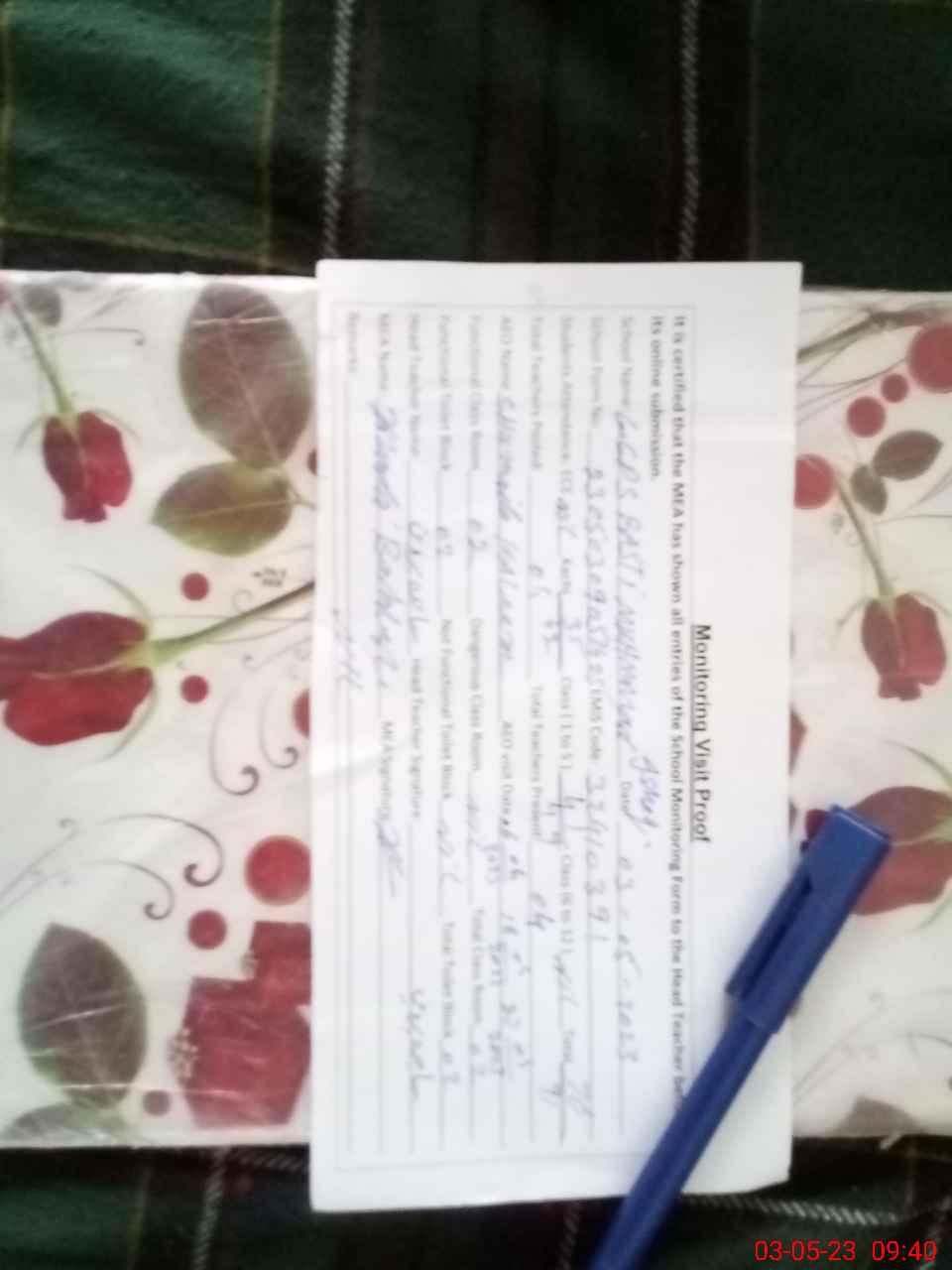 | Monitoring Date: 03-05-2023 | Start Time: 03-05-2023 09:05 AM | End Time: 03-05-2023 09:42 AM | Name of MEA: Kh**** Ba**** | |
