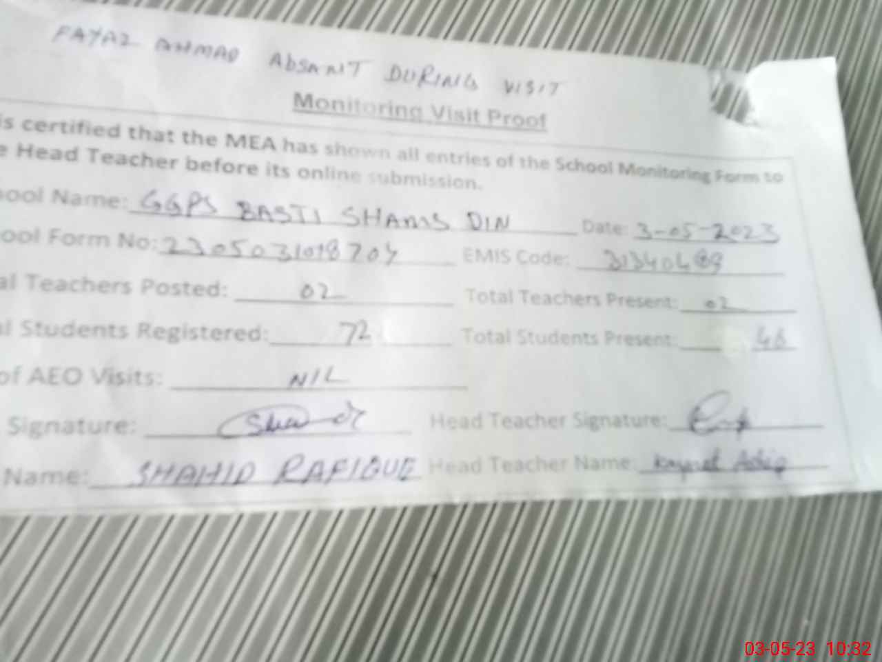 | EMIS Code: 31340489 | Name of School: GGPS BASTI SHAMAS DIN | |||
