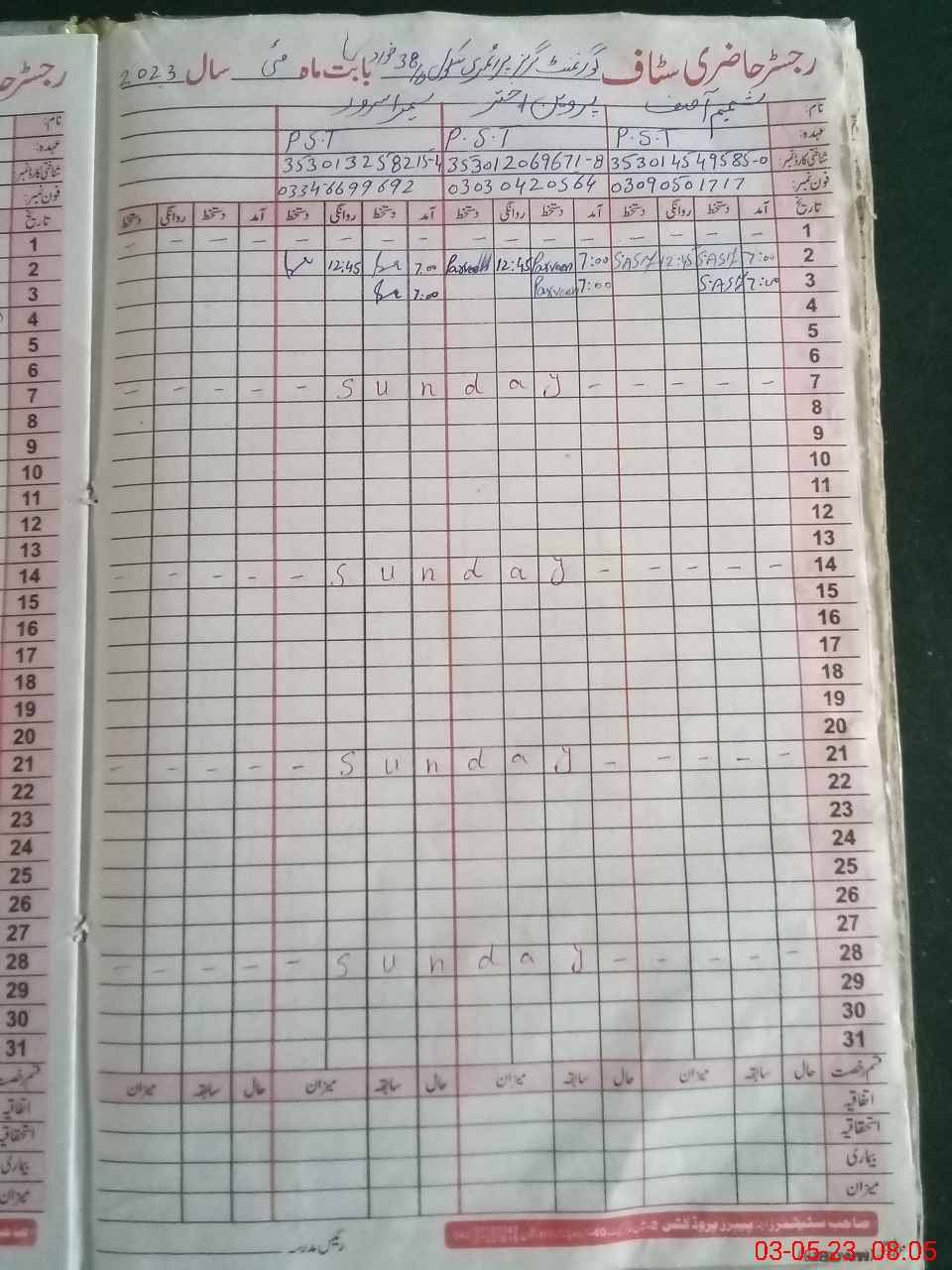 | Name: Sh**** As**** Designation: (School Headmaster's/Headmistress's) PST Phone/Cell Number: 03**** |