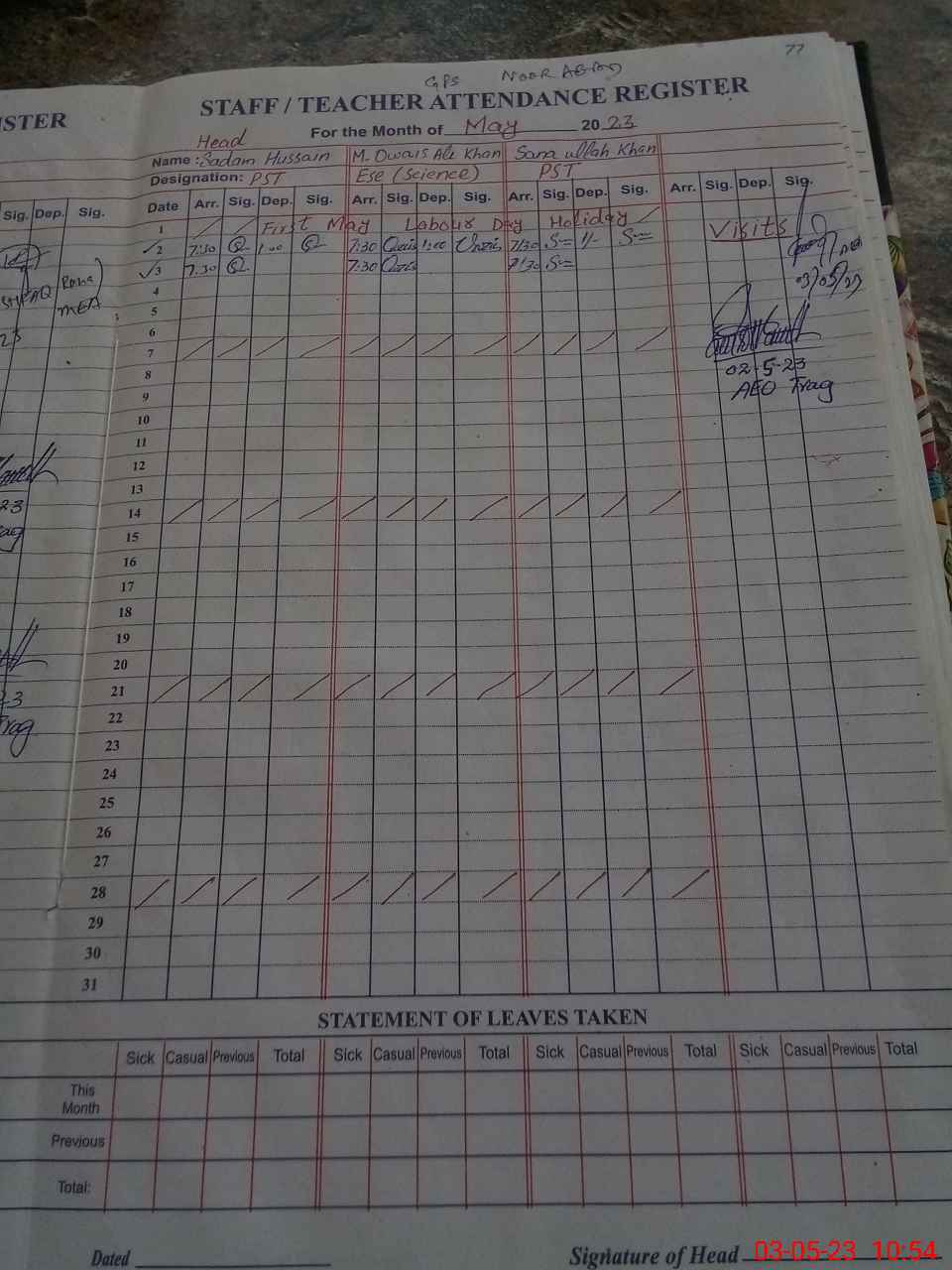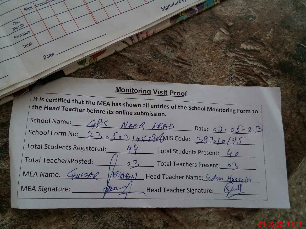 | Attendance Register | Head Teacher | MEA with School | Visit Proof |