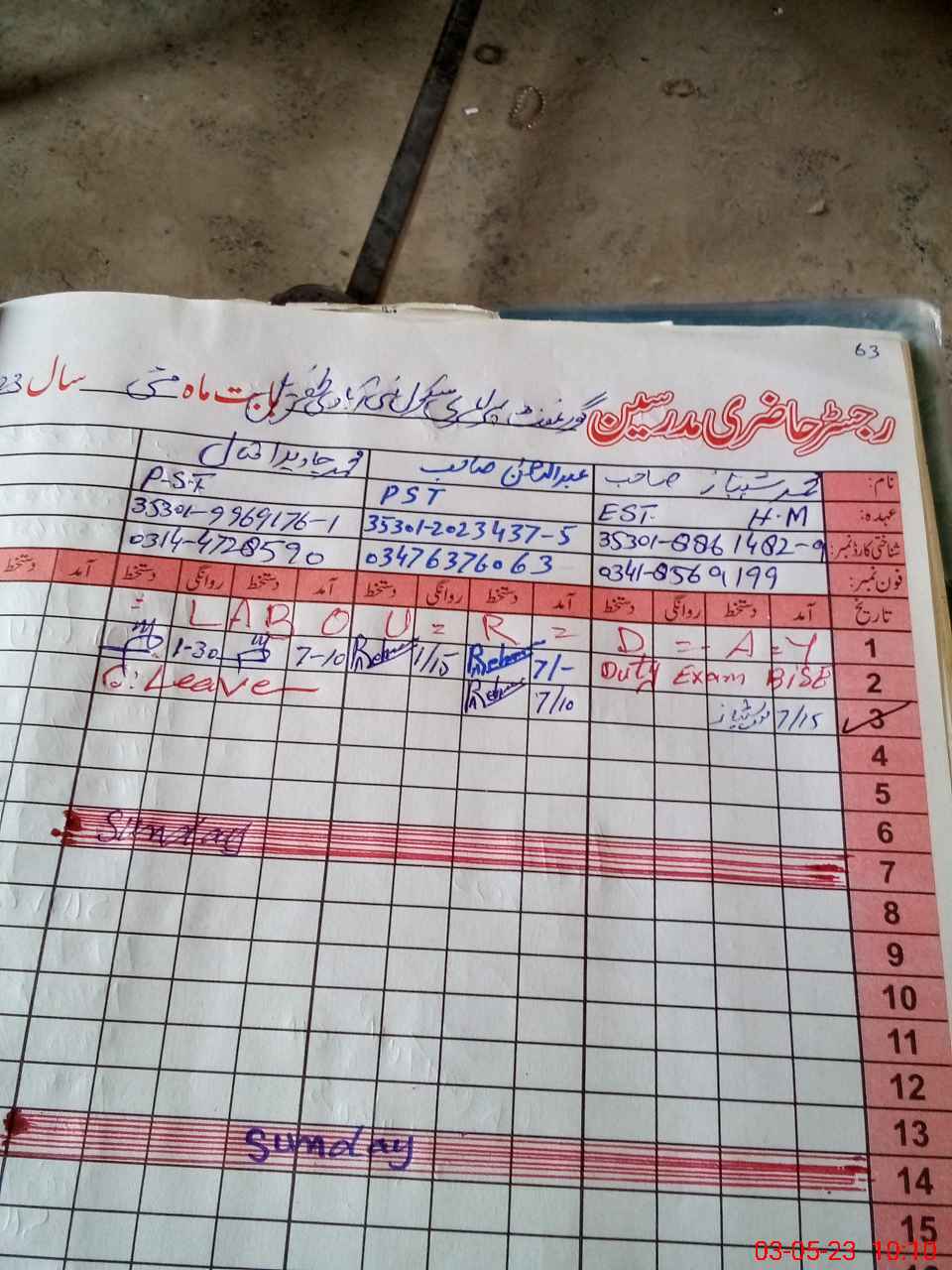 | Name: Sh**** Ba**** Kh**** Designation: (School Headmaster's/Headmistress's) EST Phone/Cell Number: 03**** |
