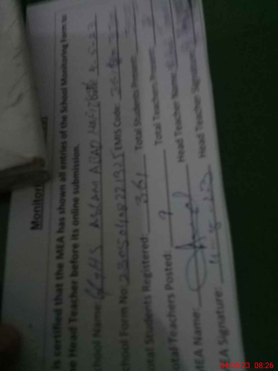 | Name: Ar**** No**** Designation: (School Headmaster's/Headmistress's) Headmistress Phone/Cell Number: 03**** |