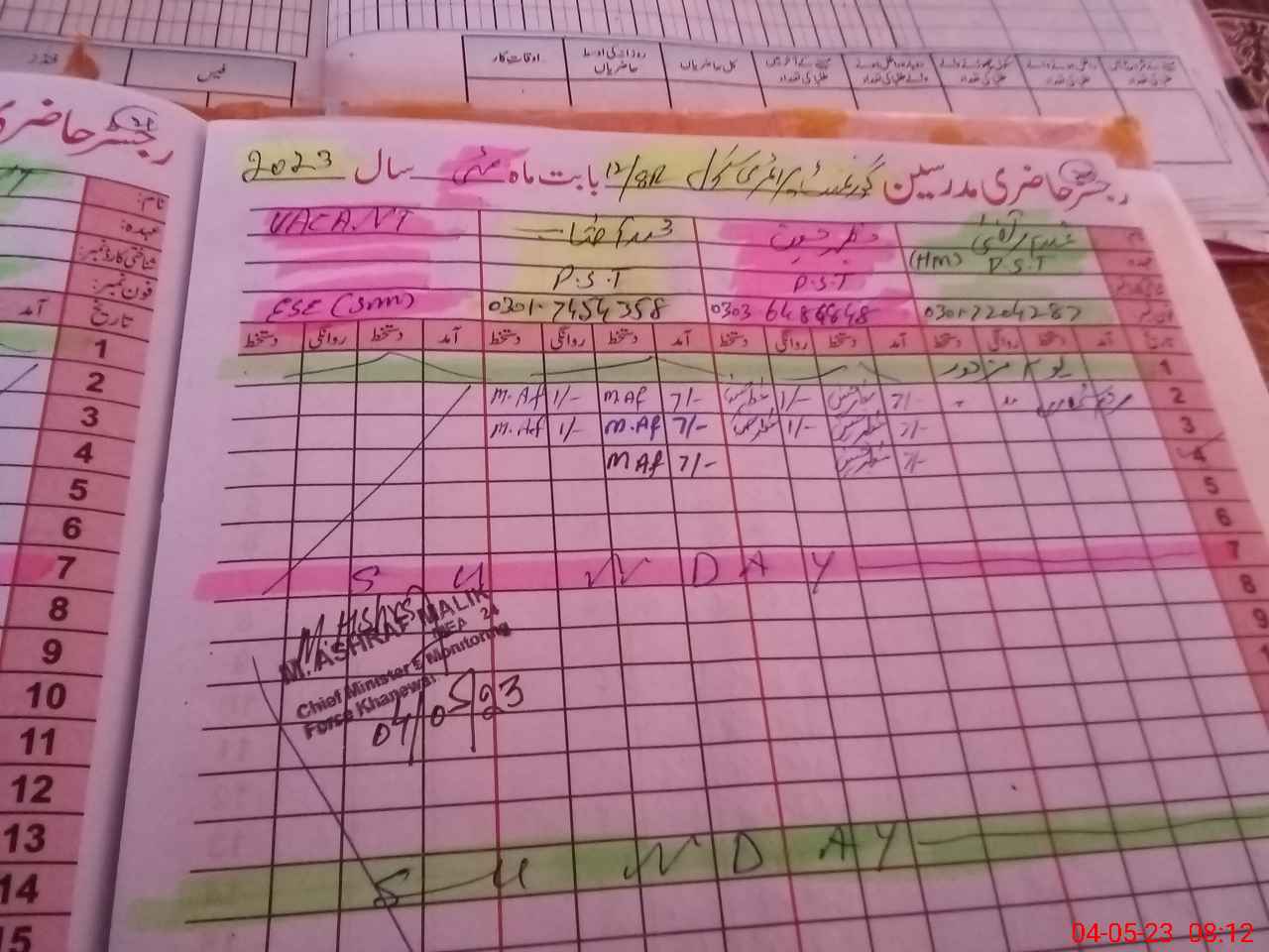 | Name: Mu**** Sa**** Designation: (School Headmaster's/Headmistress's) PST Temporarily Head Phone/Cell Number: 03**** |