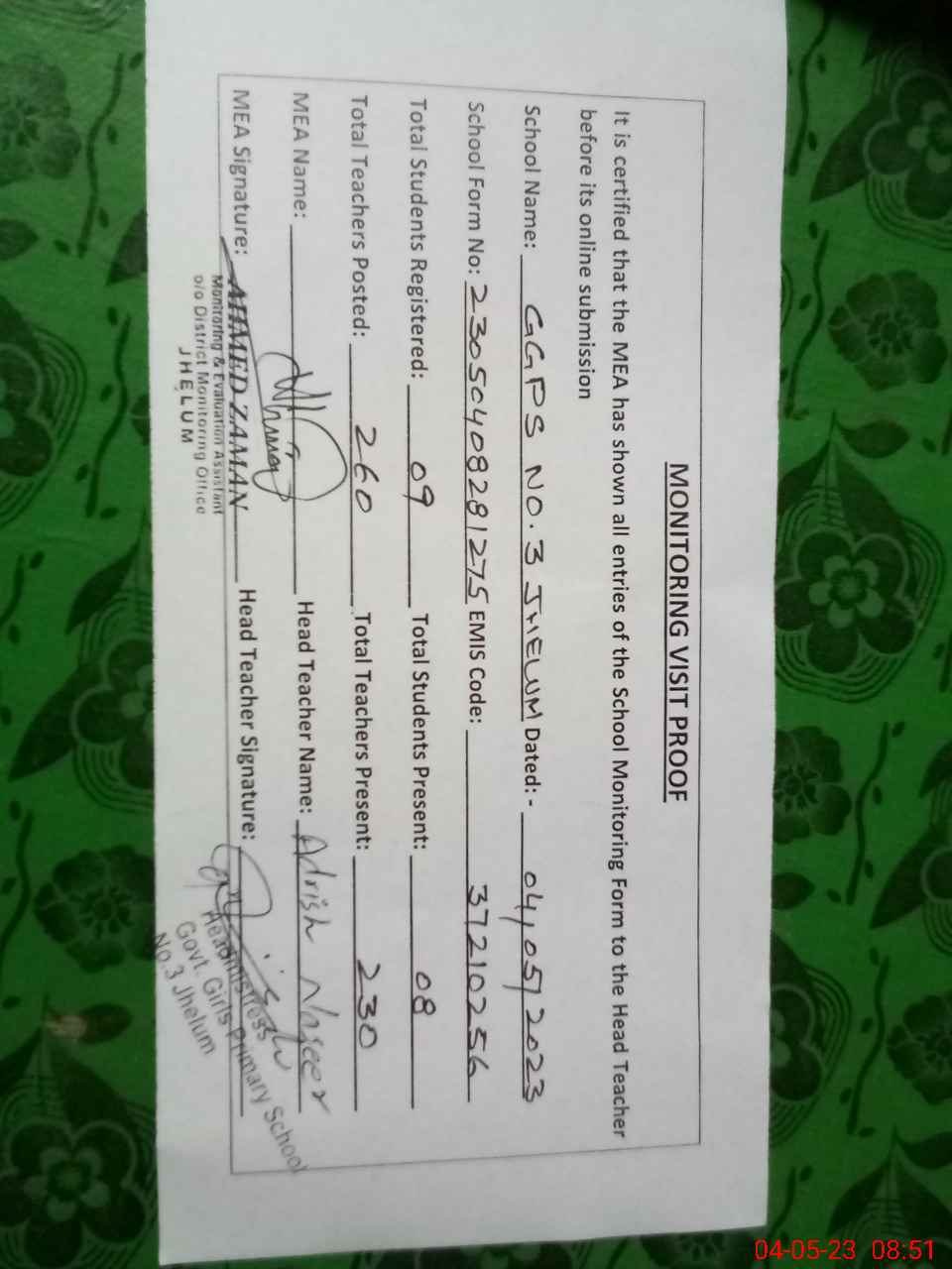 | EMIS Code: 37210256 | Name of School: GGPS NO. 3 JEHLUM | |||