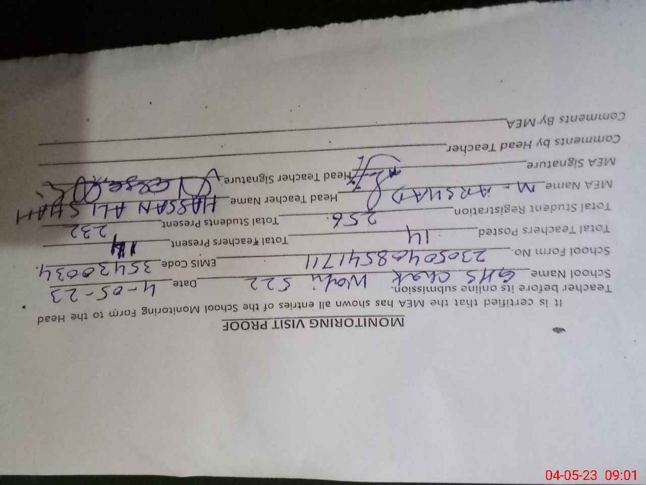 | Name: Ha**** Al**** Sh**** Designation: (School Headmaster's/Headmistress's) SST Sci Phone/Cell Number: 03**** |