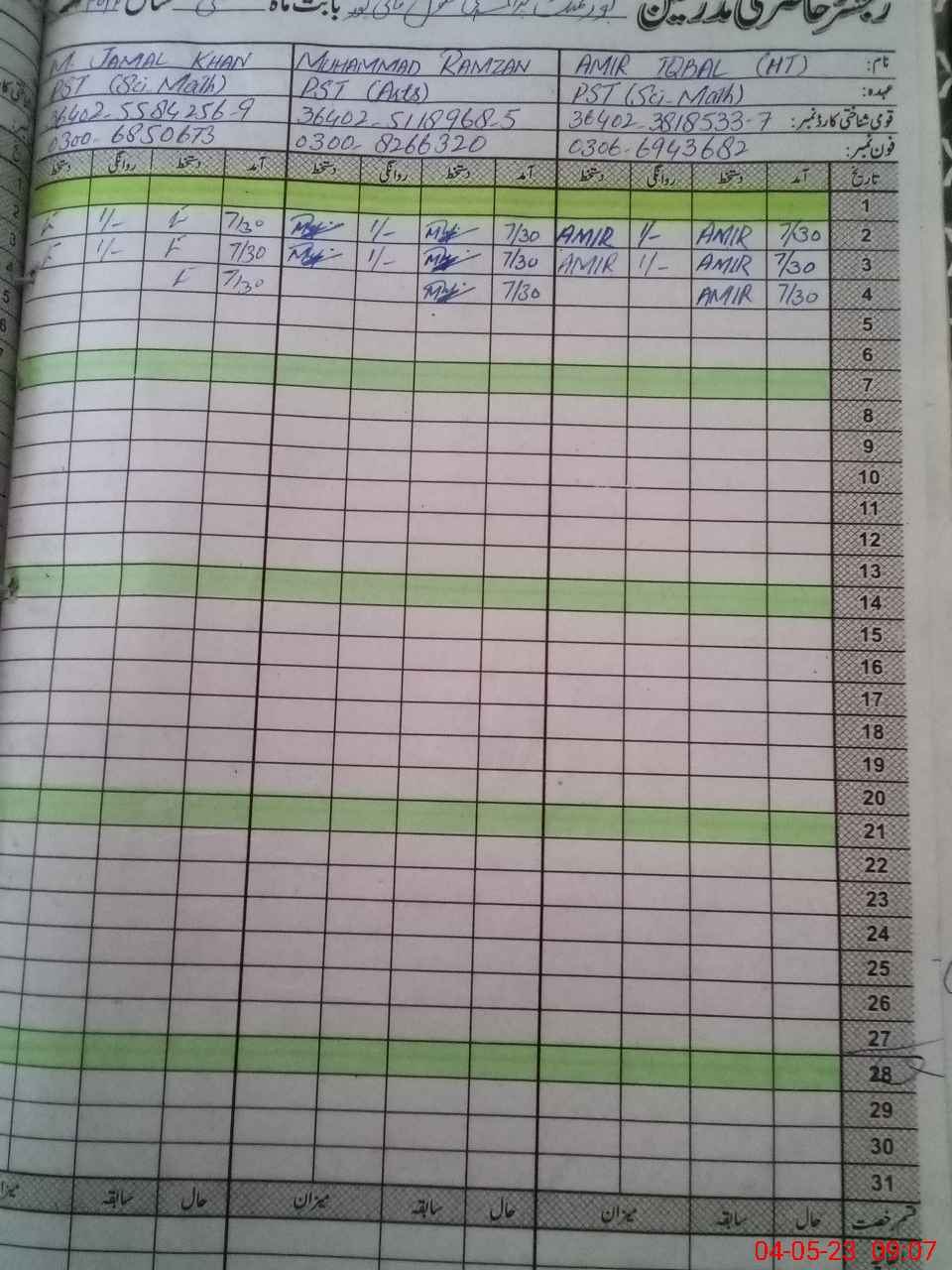 | Name: AM**** IQ**** Designation: (School Headmaster's/Headmistress's) PST Phone/Cell Number: 03**** |