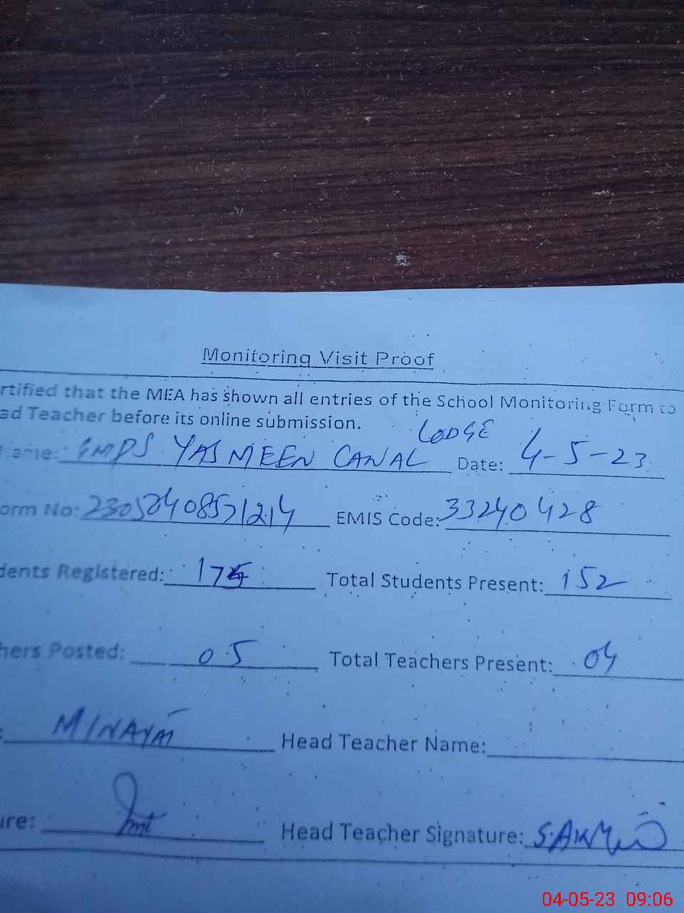 | EMIS Code: 33240428 | Name of School: GMPS YASMIN CANAL LODGE | |||