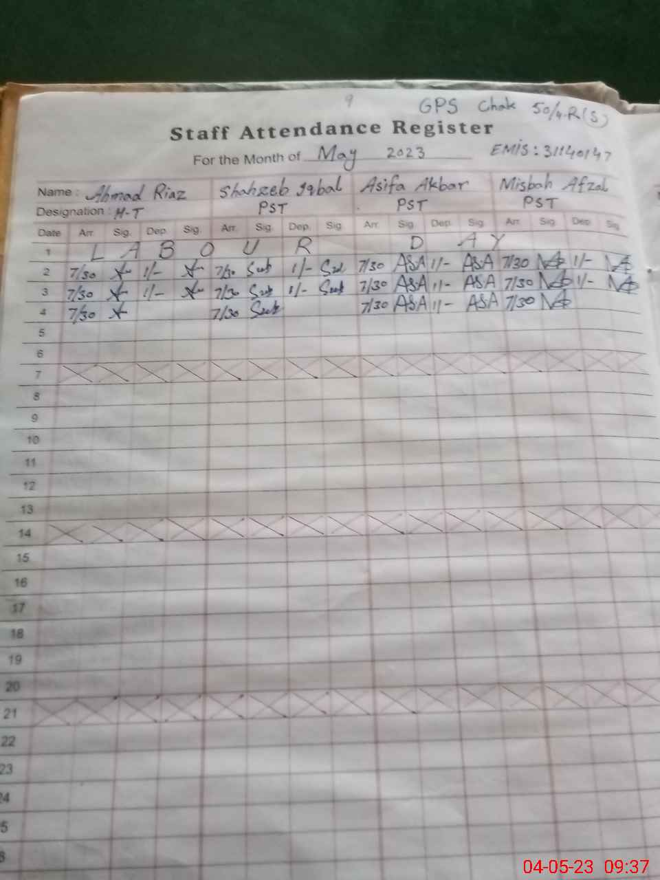 | EMIS Code: 31140147 | Name of School: GPS CHAK NO 50/4-R NO 2 | |||