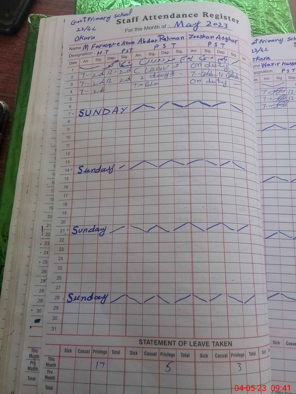 | 35**** | Ze**** As**** | ESE | Contract | 0 | 0 | 0 | 0 | 0 | 0 | 0 | 0 | 0 | Exam Duty |