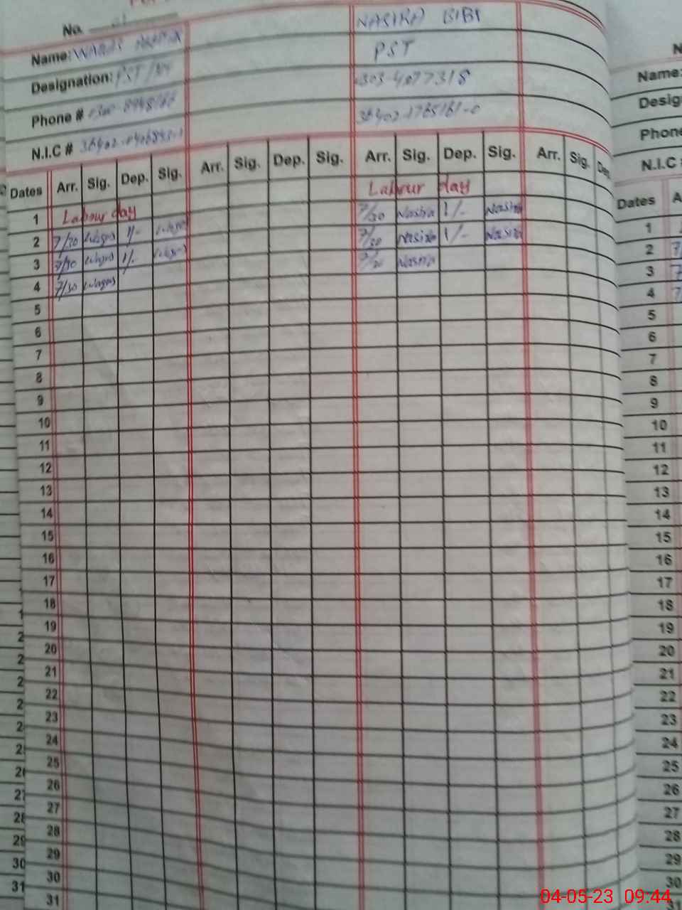 | CNIC | Full Name | Designation | R/C | Absence During Last Calender Month |
