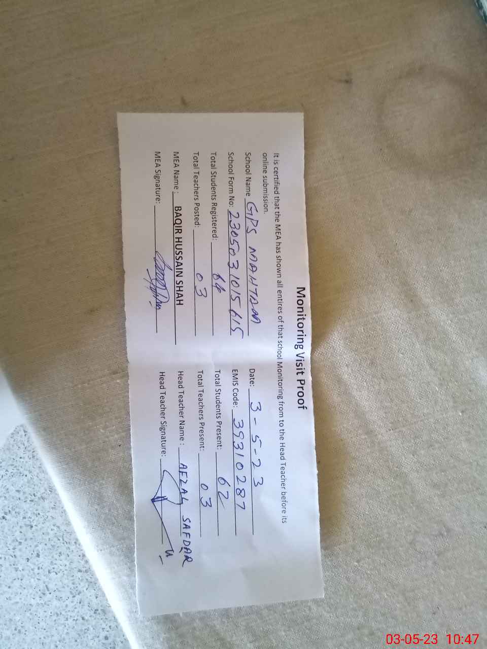 | EMIS Code: 39310287 | Name of School: GPS MAHTAM | |||