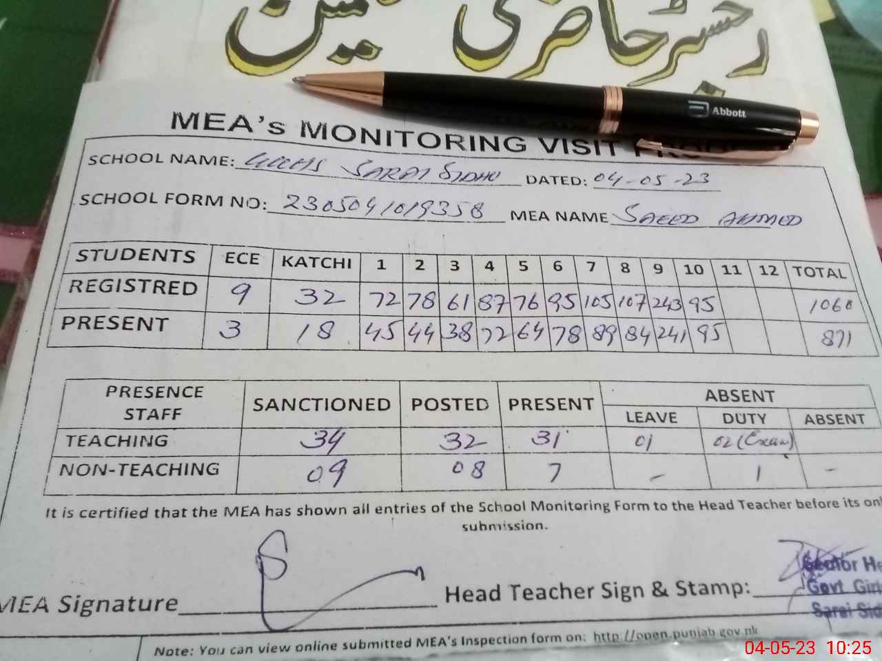 | EMIS Code: 36410035 | Name of School: GGHS SARAI SIDHU | |||