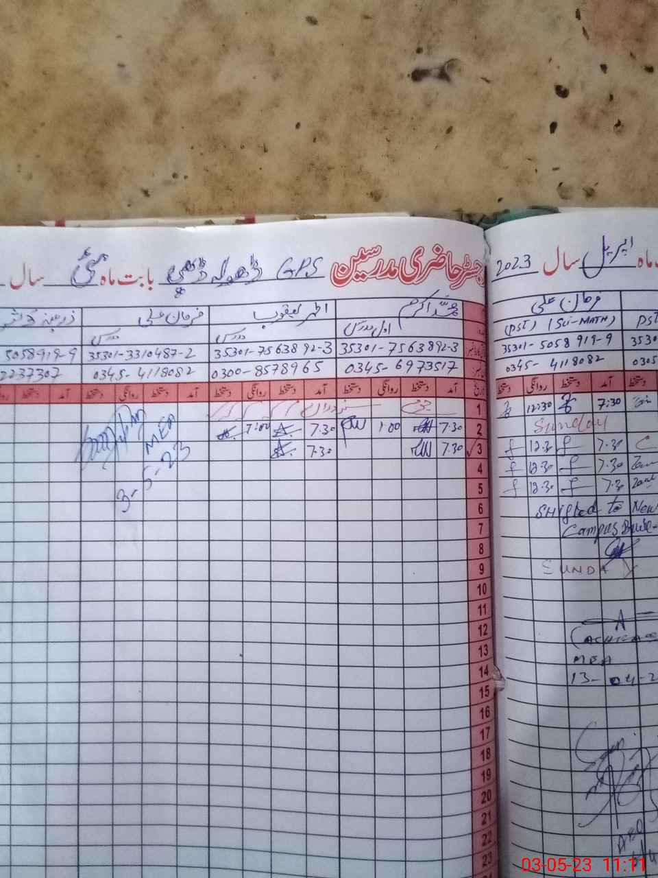 | Name: M.**** Designation: (School Headmaster's/Headmistress's) PST Phone/Cell Number: 03**** |