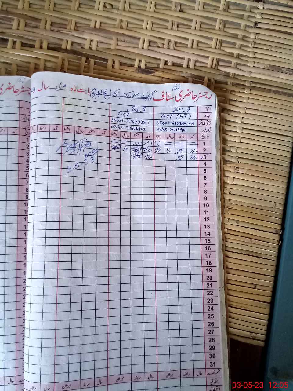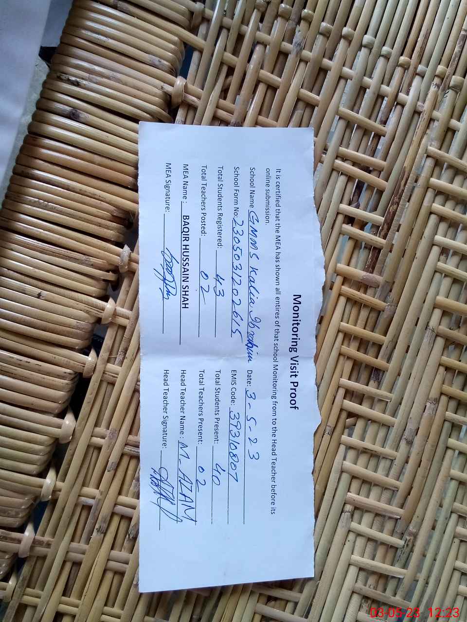 | Name: Mu**** Az**** Designation: (School Headmaster's/Headmistress's) PTC/JV Phone/Cell Number: 03**** |