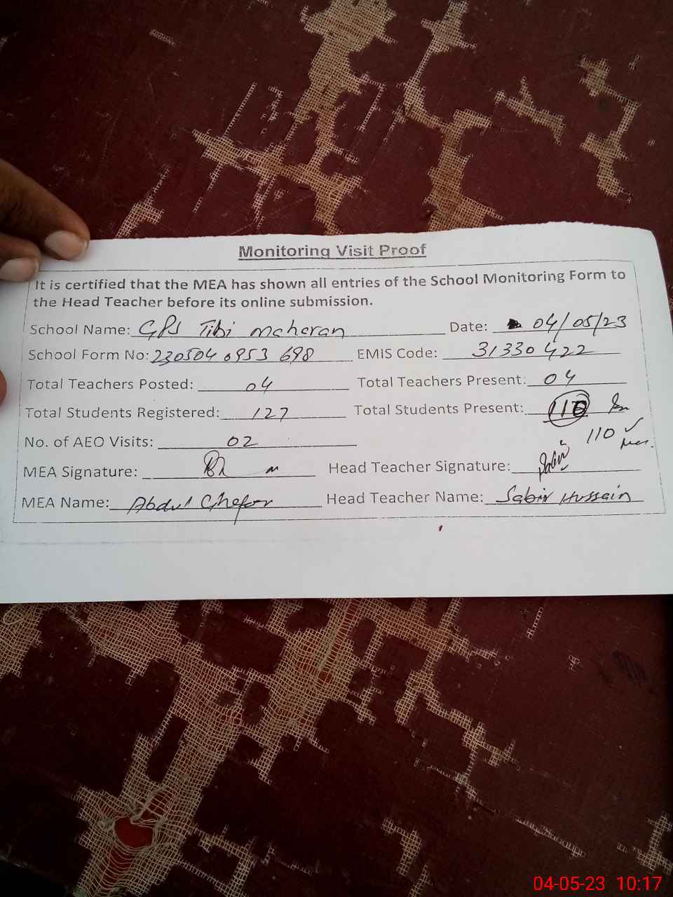 | EMIS Code: 31330422 | Name of School: GPS TIBBI MAHARAN | |||